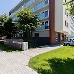 Il se trouve dans le quartier Dzielnica Uzdrowiskowa de Kołobrzeg, à 10 minutes de marche du centre-ville. La plage centrale se trouve à 1 km. The Q Club et Stefan Żeromski Park sont dans une zone de 1 km.